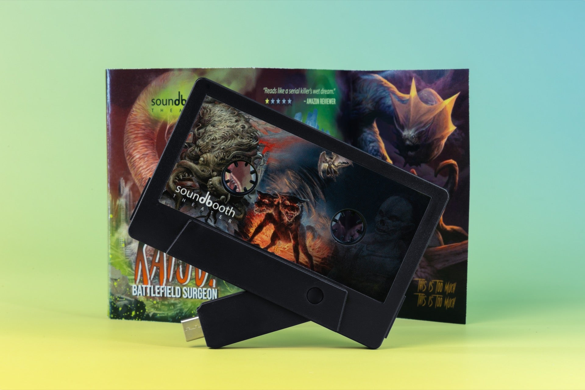 With over 20 terrifying hours of audio, the Cinematic Audio series, Kaiju Battlefield Surgeon, is not for the faint of heart. Written by Matt Dinniman, author of the bestselling LitRPG series, Dungeon Crawler Carl, marries virtually every genre of horror with a GameLit spin. Also includes bonus content. Listen on any device with a USB port. Donut, Mongo, and Matt Dinniman sold separately. NOTE: You can also extract the audio and use the 8GB USB for file storage.